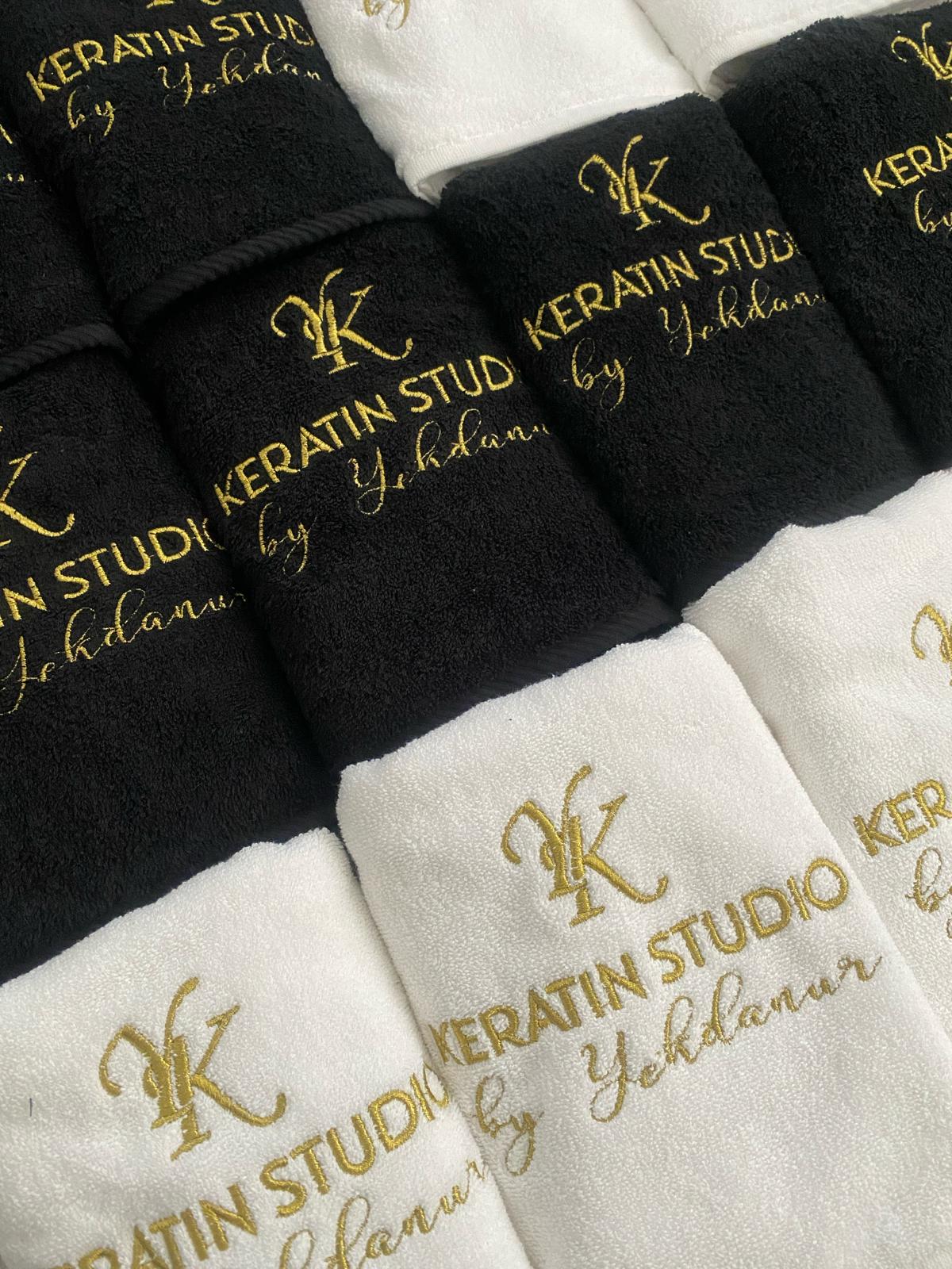 Güzellik Merkezi Logolu Havlu Seti Siyah ve Beyaz